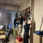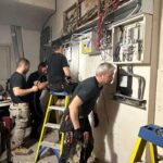 Engineer carefully removing outdated circuits and inspecting legacy cabling in preparation for the full distribution system upgrade.