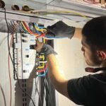 Coordinated team effort during main installation—laying armored cables, routing feeds, and maintaining compliance standards.