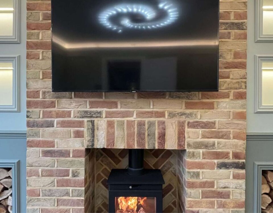 A seamless blend of tradition and technology—fireplace customized with display […]- Date