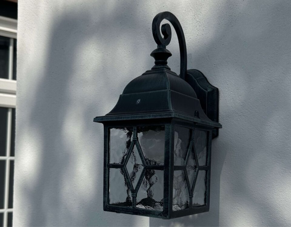 Outdoor lantern creates dynamic shadow patterns—balancing function with decorative appeal.- Date