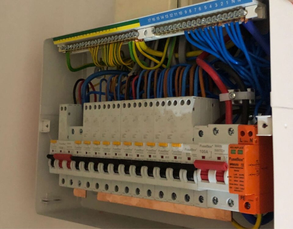 Modern, well-organized fuseboard with clearly labeled circuits and precise cable […]- Date