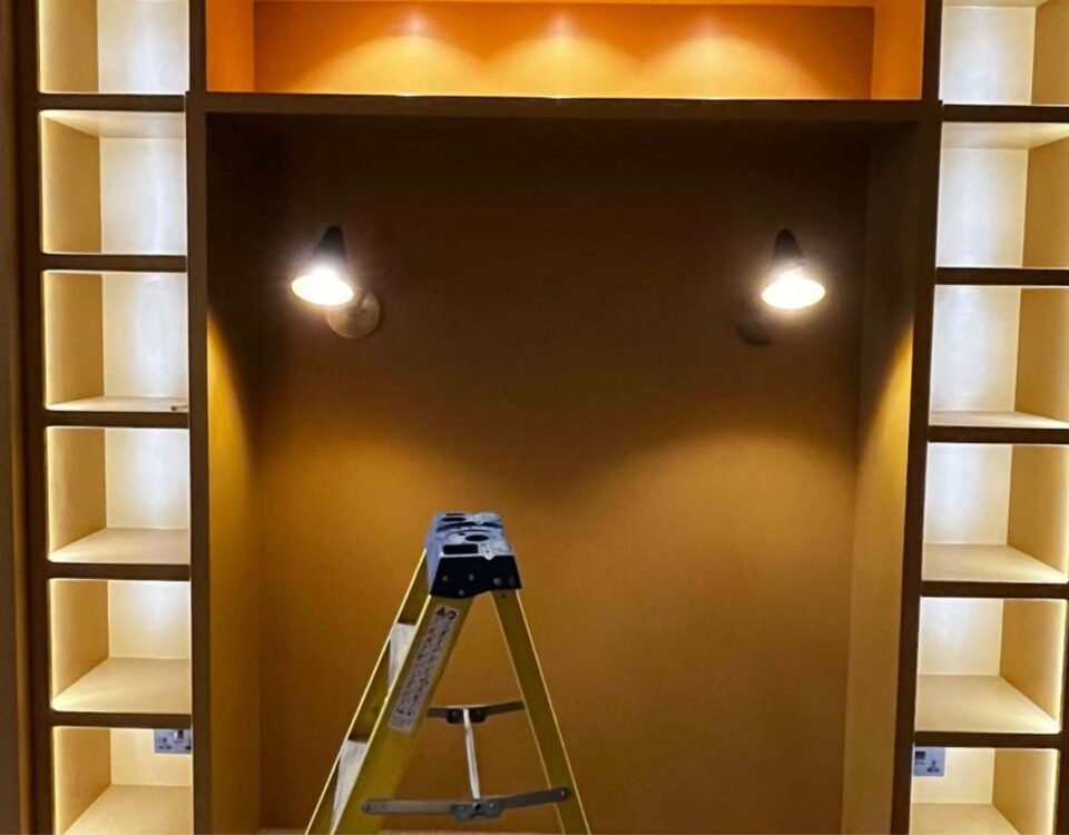 Bespoke shelving with integrated lighting transforms the living room into […]- Date