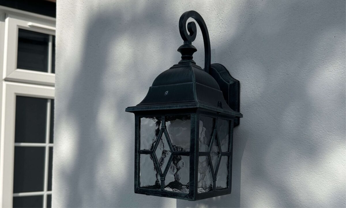 Outdoor lantern creates dynamic shadow patterns—balancing function with decorative appeal.- Date