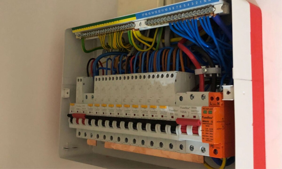 Modern, well-organized fuseboard with clearly labeled circuits and precise cable […]- Date