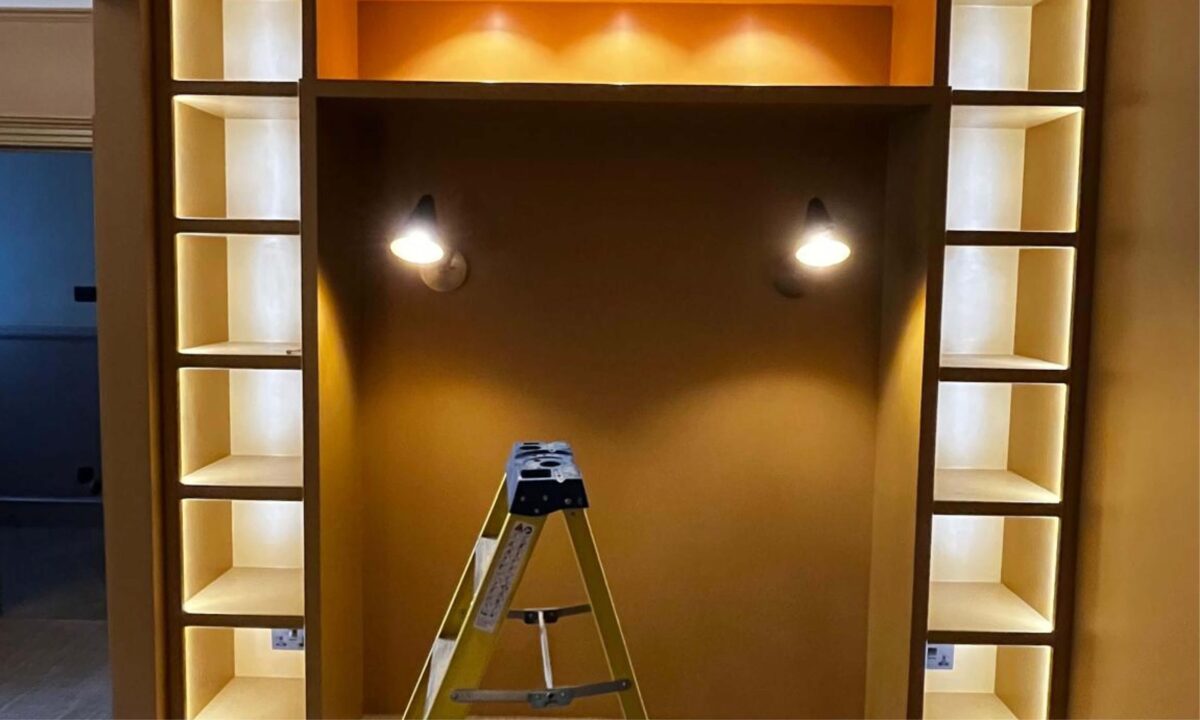 Bespoke shelving with integrated lighting transforms the living room into […]- Date